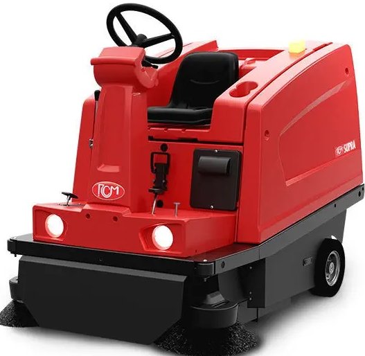 RCM SUPRA Kehrsaugmaschine Kehrbreite mit 2 Seitenbesen 1450mm (Option) Kehrbreite mit 1 Seitenbesen 1200mm Kehrbreite ohne Seitenbesen 850mm Fahrantrieb 8 km/h Kehrgutbehälter 120 Liter manuell oder 150 Liter bei Hochentleerung Flächenleistung 6000 qm/h Filterrüttler elektrisch Filtersystem mit Patronenfilter 6 qm Optionen: noch nicht alle bekannt, bitte anfragen.