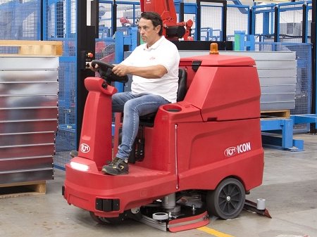 RCM ICON Scheuersaugmaschine Arbeitsbreite Tellerbürsten 900 oder 1000mm Arbeitsbreite Walzenbürsten 1000mm mit Grobschmutzaufnahme in separaten Chromstahl - Behälter Frischwassertank: 200 Liter Schmutzwassertank: 210 Liter Anpressdruck: variabel Radantrieb vor- u. rückwärts Flächenleistung: 6400 qm/h USB-Anschlüsse für Handy laden etc. und LED - Licht vorne inklusive Ladegerät 230V und Traktionsbatterie im Stahltrog 36V / 400 Ah mit Füllsystem inklusive