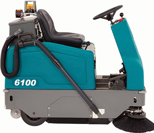 TENNANT 6100 Subkompakte, batteriebetriebene Aufsitz-Kehrsaugmaschine Mit seiner außergewöhnlichen Leistung durch effizientes Kehren in einem Durchgang und einem mehrstufigen Filtersystem reinigt der vielseitige 6100 leise und effektiv eine Vielzahl von Bodenoberflächen. Leichtes Manövrieren in engen Räumen für bessere Zugänglichkeit und Erhaltung der Luftqualität durch rauchfreien Batteriebetrieb. TENNANT Kehrsaugmaschine Modell 6100 E Kehrbreite mit 2 Seitenbesen 970mm Kehrbreite mit 1 Seitenbesen 760mm Kehrbreite ohne Seitenbesen 560mm Fahrantrieb 8 km/h Kehrgutbehälter 85 Liter Flächenleistung 7760 qm/h Filterrüttler elektrisch Filtersystem mit Plattenfilter 3.1 qm Batteriepaket 36 Volt / 220 Ah/5 inkl. Stahltrog und Wasserfüllsystem mit Bidon, Ladegerät 230 Volt vollautomatisch