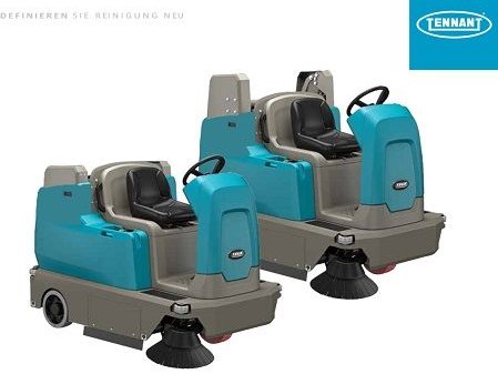TENNANT Scheuersaugmaschine T12 Arbeitsbreite Tellerbürsten 700-800mm Arbeitsbreite Walzenbürsten 800mm Frischwassertank 132 Liter Schmutzwassertank 166 Liter Anpressdruck 30 - 91 kg variabel Radantrieb vor- u. rückwärts Flächenleistung 6200 qm/h