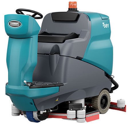 TENNANT Scheuersaugmaschine T981 Arbeitsbreite Tellerbürsten 800 oder 900mm Arbeitsbreite Walzenbürsten 750mm mit Grobschmutzaufnahme in separaten Auffang-Behälter Frischwassertank 125 Liter Schmutzwassertank 135 Liter Anpressdruck variabel in 4 Stufen Radantrieb vor- u. rückwärts Flächenleistung bis 5300 qm/h