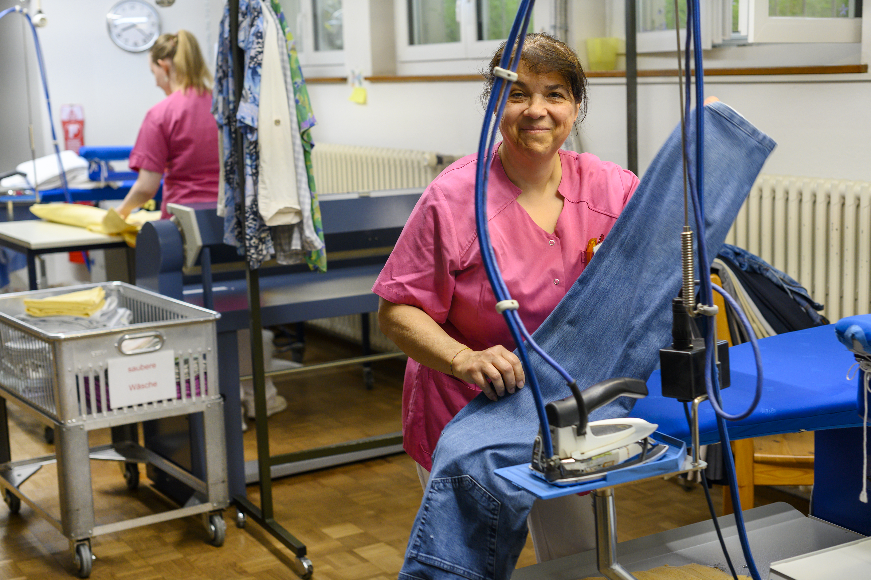 Die persönliche Wäsche der Bewohnerinnen und Bewohner des Pflegezentrums wird in der eigenen Wäscherei gewaschen und gebügelt. Das Team Hauswirtschaft ist auch für die regelmässige Reinigung der Zimmer und Räumlichkeiten verantwortlich und trägt mit geschultem Blick und ordnenden Händen dazu bei, dass im Pflegezentrum ein Wohlfühlambiente herrscht. Die Hauswirtschaft ist auch als externe Dienstleisterin mit einem Wäschedienst (persönliche Wäsche und Haushaltwäsche) für die Kundinnen und Kunden der Spitex Regio Liestal tätig.