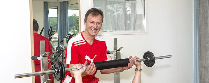 Körperliche Ertüchtigung hoch über den Dächern von Liestal: Im Erweiterungsbau (4. Obergeschoss) haben wir für die Bewohnerinnen und Bewohner, die Mitarbeitenden und alle weiteren Interessierten einen Fitnessraum eingerichtet. Die Infrastruktur mit verschiedenen Geräten ist speziell auf die Bedürfnisse von Seniorinnen und Senioren ausgelegt.