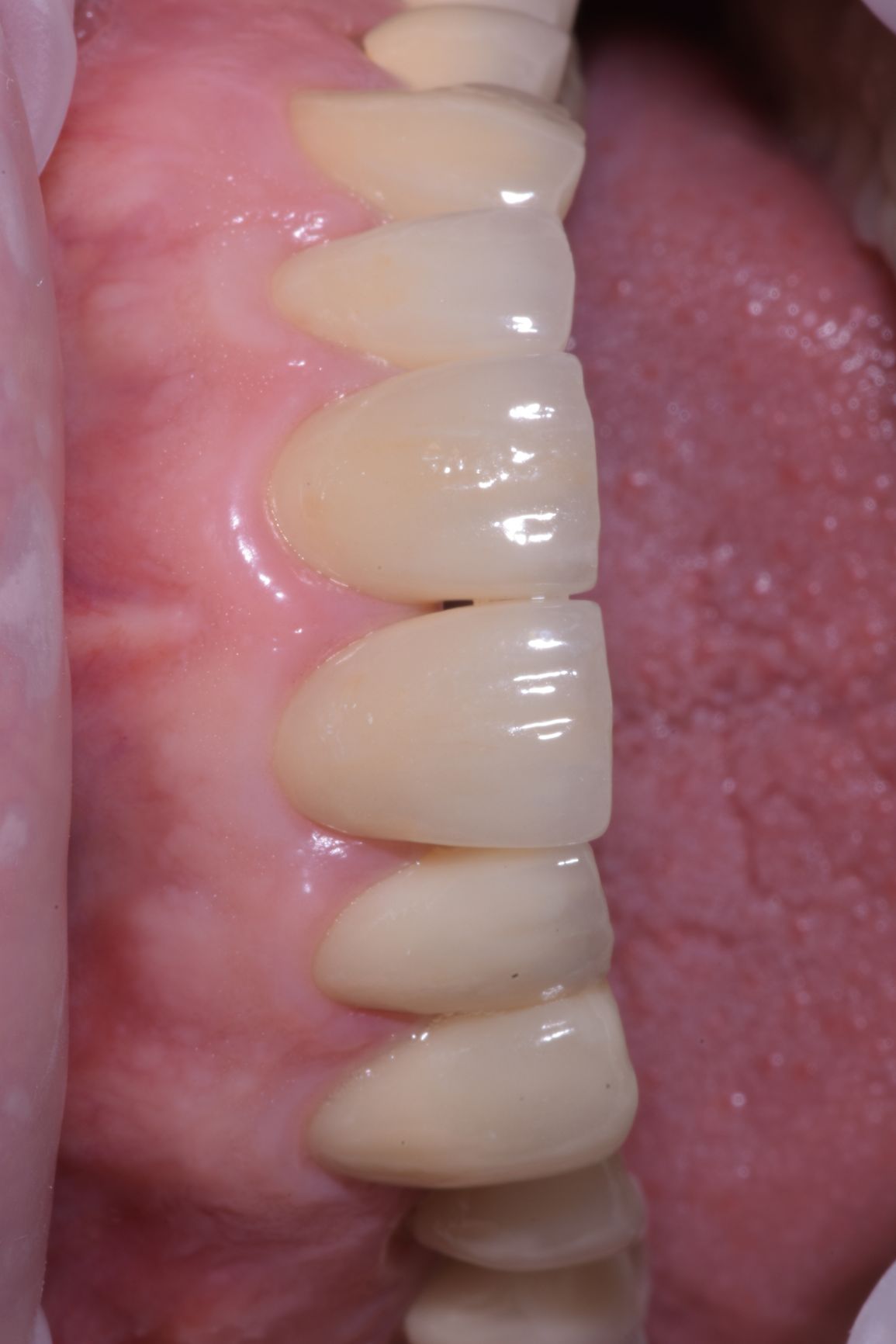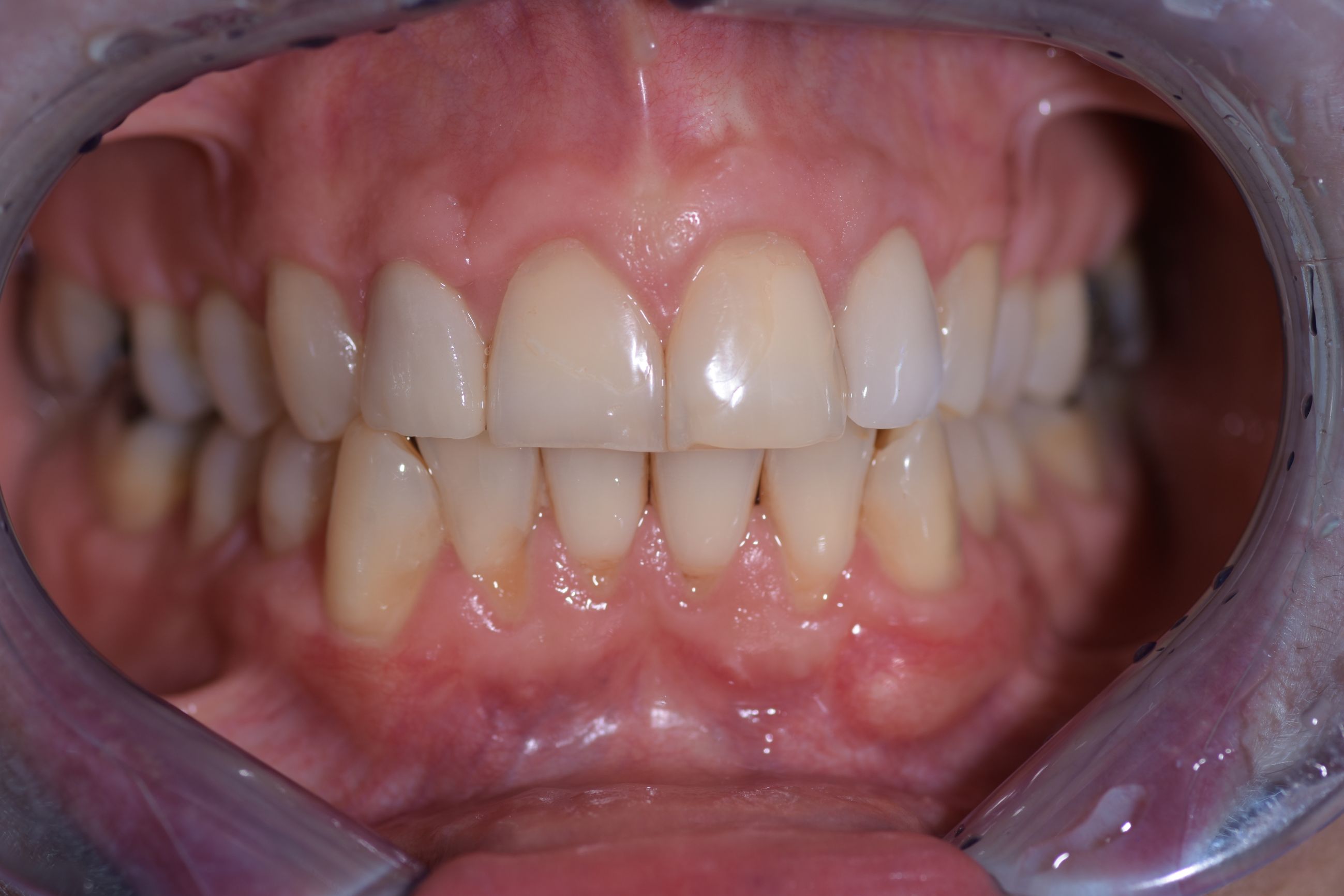 Terapia eseguita con chirurgia Mucogengivale, sostituzione protesica di 12 e terapia conservativa incisivi centrali superiori
