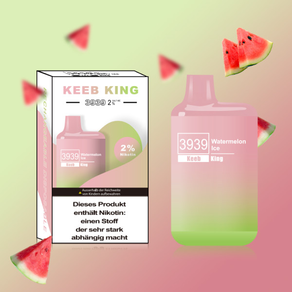 Produktinformationen "Keeb King 3939 - Watermelon Ice" Auch einer der beliebtesten Geschmacksorten aus dem Keeb Sortiment ist und bleibt die Wassermelone. Fruchtig und episch. Es ist ein Androidladekabel dabei!