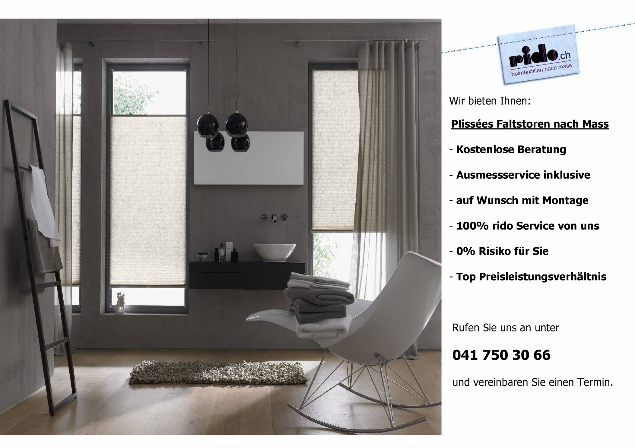 Vorhänge nach Mass - Gardinen, Deko- und Verdunklungsstoffe sowie Bezugsstoffe. Bettwäsche und Bettwaren. Innenbeschattungen: Plissées, Faltstoren, Rollos, Jalousien, Lamellen. Insektenschutz, Fliegengitter und Teppiche auf Mass. Profitieren sie von unserer Heimberatung und unserem Ausmessservice und eigenem Nähatelier. Ebenfalls garantieren wir ihnen eine fachgerechte Montage. rido - Service von A-Z.Massanfertigungen für Ihr Fenster. - Einkäufe im Geschäft = Barzahlung - Nähaufträge / Heimberatungsaufträge = Rechung - Mit dem Auto: Zugerstasse 195 in Neuägeri alte Spinnerei (EG) - Mit dem Bus: Linie 1 / Bushaltestelle Neuägeri