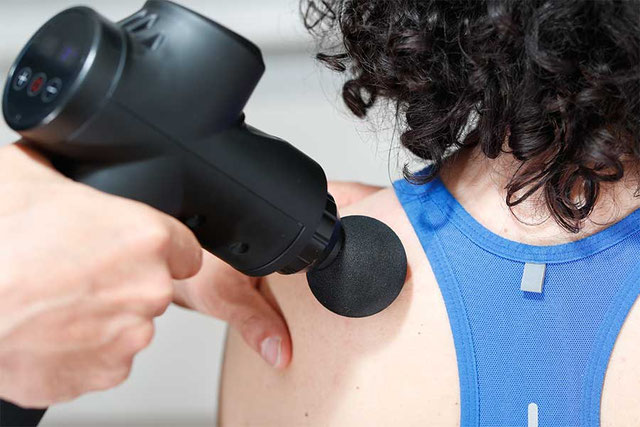 Mit den technischen Neuerungen fliessen immer mehr Hilfsmittel in die Physiotherapie ein. So können bei hartnäckigen Verspannungen und Verklebungen beispielsweise ergänzend zur klassischen Physiotherapie nach Absprache auch Massage Guns zum Einsatz kommen. Diese akkubetriebenen Geräte versetzen das Gewebe mit mechanischen Vibrationen in eine Schwingung, bieten eine hochwirksame Muskelentlastung und sorgen durch eine verbesserte Durchblutung für eine schnellere und effektivere Muskelregeneration. Die Geräte verfügen über verschiedene Aufsätze für unterschiedliche Körperregionen und die Form erinnert an eine grosse Pistole, daher der Name „Massage Gun“