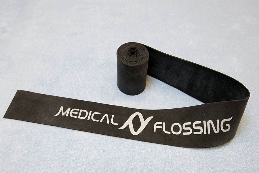 Medical Flossing Medical Flossing ist eine neue, effektive Trainings- und Therapiemethode im Bereich der medizinischen Behandlungsmöglichkeiten. Schmerzen z. Bsp. nach intensivem Lauftraining werden schnell reduziert und die Mobilität von Gelenken und Gewebe gesteigert. Auch eine schnellere Regeneration ist durch das Medical Flossing möglich. Dabei wird ein Flossing-Band (dehnbares, 1-2 mm starkes Gummiband) grossflächig auf die zu behandelnde Stelle angelegt, um anschliessend gezielte Übungen für die betroffene Muskulatur durchzuführen. Dabei ist darauf zu achten, dass die Dauer der Applikation des Flossing-Bands 2 Minuten nicht überschreitet. Ausserdem ist bei Herzbeschwerden, Tumoren, Thrombosen, akuten Entzündungen sowie Latexallergien vom Flossing abzuraten. Der hohe Druck während der Applikation führt zum Lösen von Verklebungen und nach Entfernung des Bandes reagiert der Körper mit einer Mehrdurchblutung des betroffenen Gebietes was den Abtransport von Abfallstoff