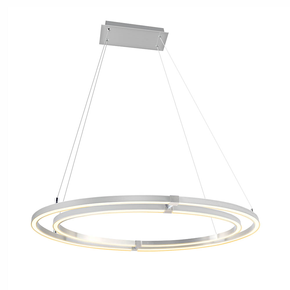 LED-Hängeleuchte mit direktem und indirektem Licht. Der innere Ring ist drehbar für Licht direkt und indirekt. Dimmbar mittels geeignetem Wanddimmer.