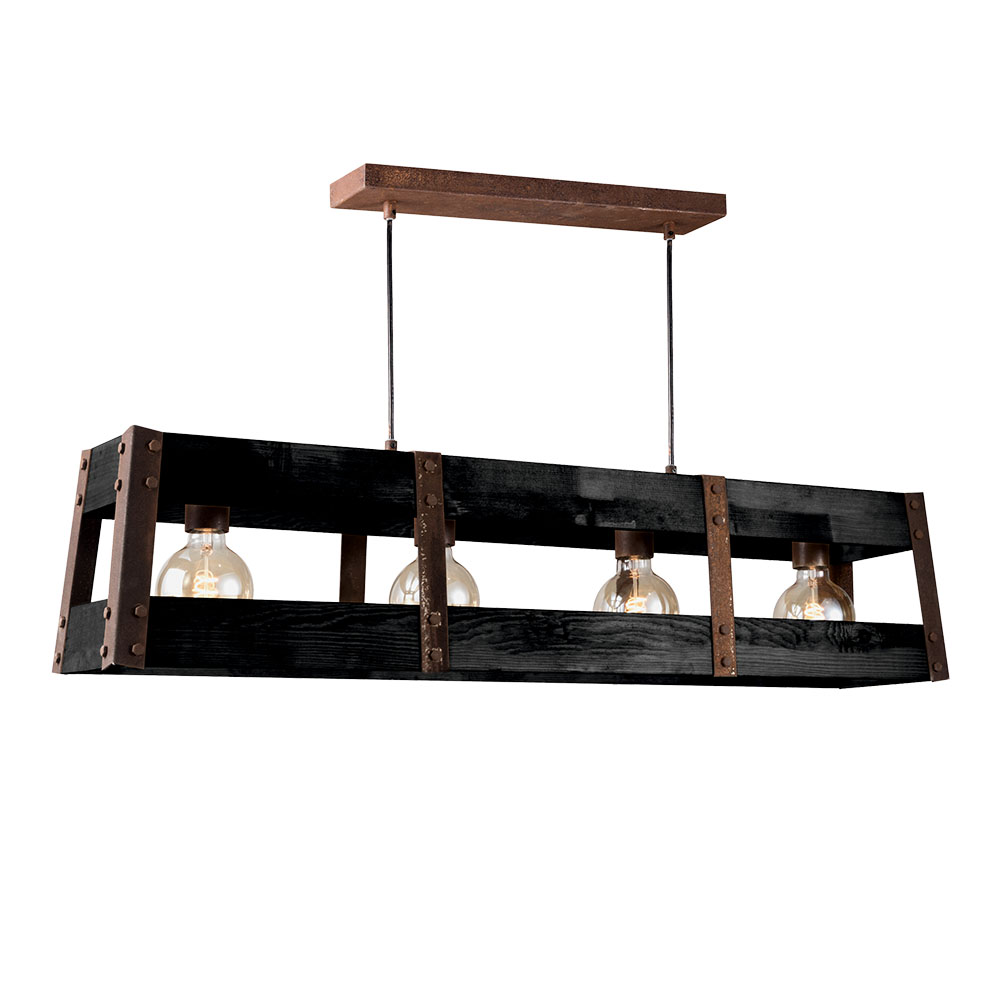 Trendige Hängeleuchte aus rostigem Metall und verbranntem Holz Pinewood mit Zertifikat FSC (Made in Finland)