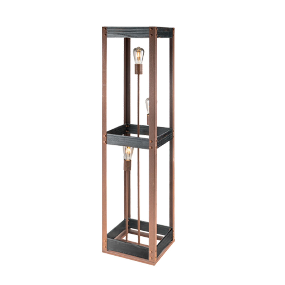 Trendige Stehleuchte aus rostigem Metall und verbranntem Holz Pinewood mit Zertifikat FSC (Made in Finland)