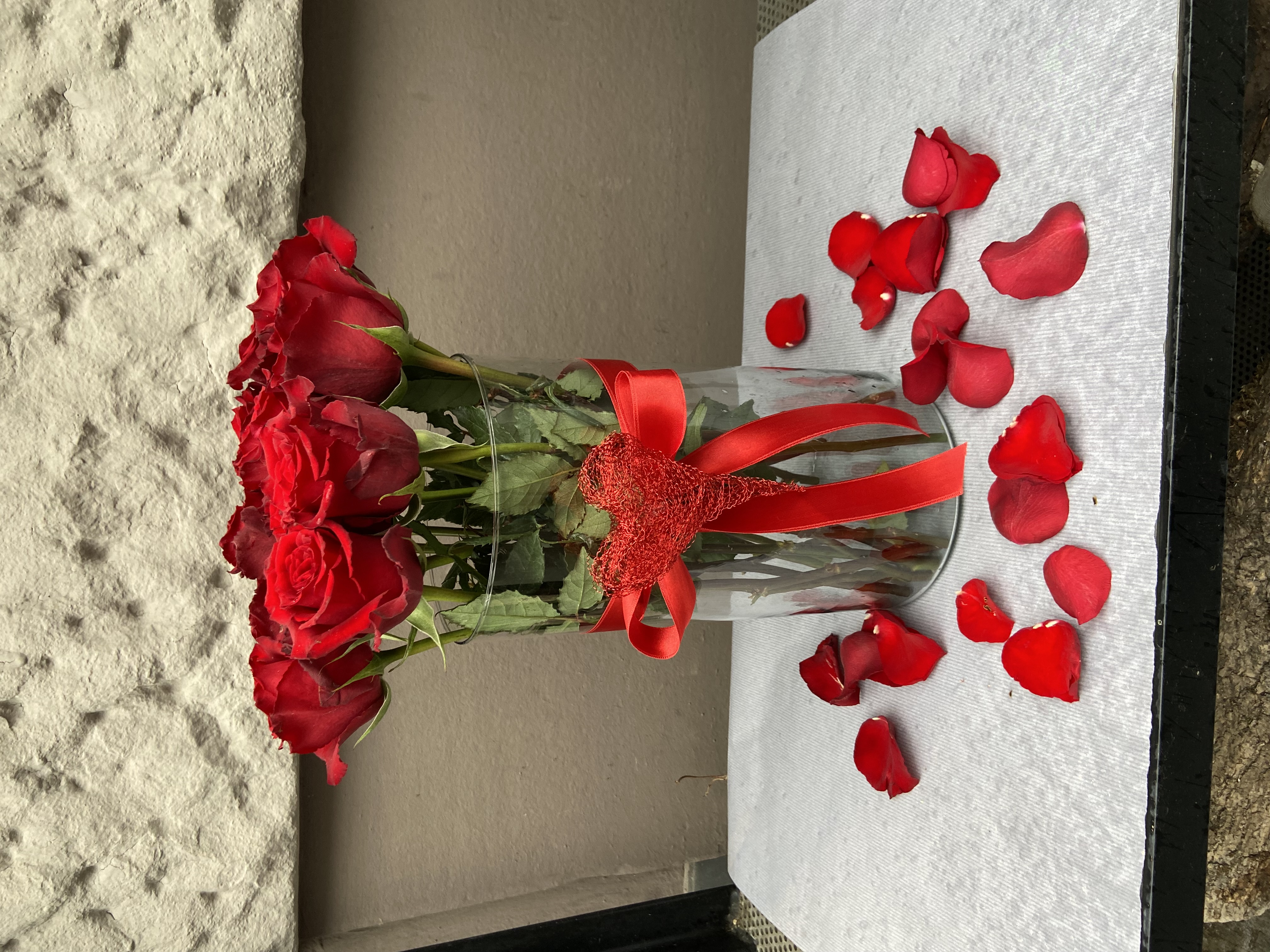 Rosenglas mit 10 roten Rosen
